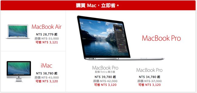 Mac 系列則是與iPhone 相同,採用同一金額折扣價的方式。