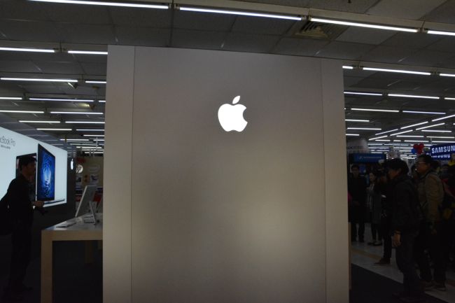 位於內湖燦坤旗艦店一樓的Apple Shop 2.0 三側採用與蘋果直營店相同的不鏽鋼牆面。