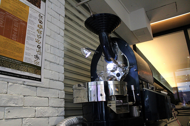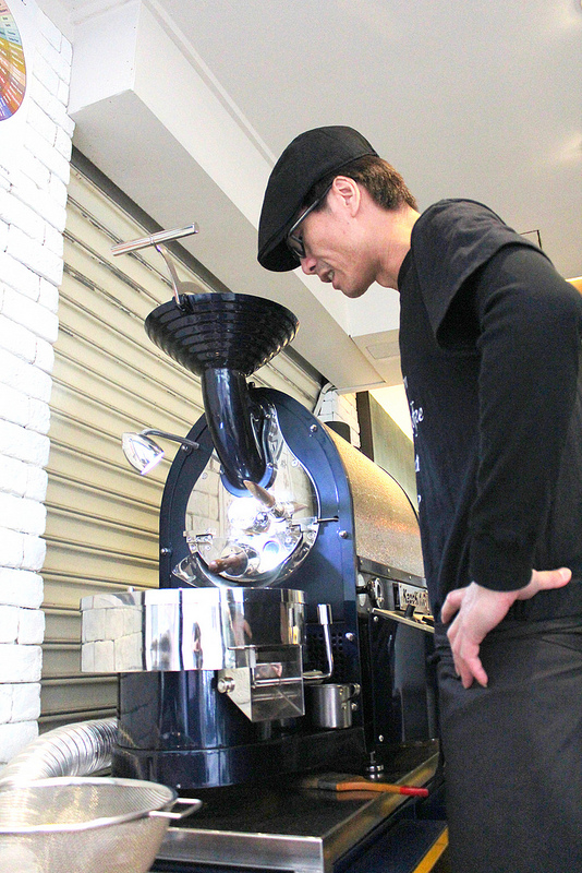 負責咖啡瑪榭店務營運的張立德正在烘焙咖啡豆,這台 KapoK 烘豆機是從通化店搬過來的,有了獨立烘焙室之後,烘豆師就能更專注於工作而不被打擾。