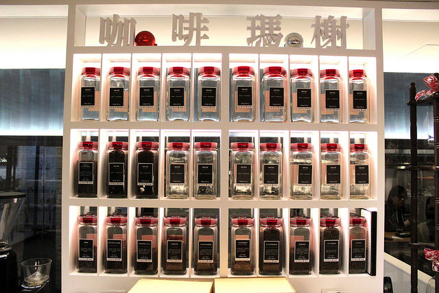 走進門就能看見的這面咖啡豆陳列架很能吸引消費者的目光, 在氣勢上就贏了一半,常聽大叔碎碎念的朋友應該都知道,自家烘焙咖啡店能夠永續經營的獲利秘訣,就在於咖啡豆銷售量這個指標上頭。