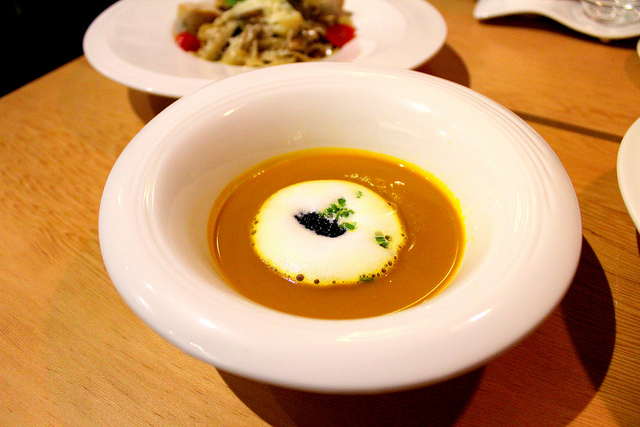 喝一口就愛上的海鮮南瓜濃湯!以濃稠奶泡取代傳統的奶水,+10分。