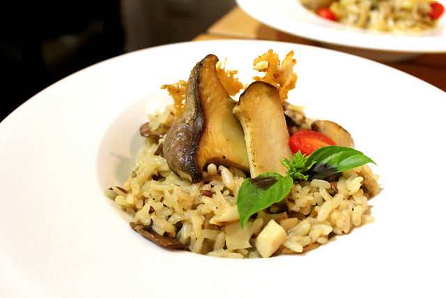 或許是因為關連企業是位在農安街的「Hana錵鐵板燒」的緣故,咖啡瑪榭在料理食材上的選用可是一點都不讓步,像是大叔這次吃得這道牛肝菌野菇燉飯裡所使用的義大利米,獨特的彈牙口感且粒粒分明。而且在整個菜單上妳絕對不會看到一般的紅醬白醬青醬口味,而是用香料、油醋來表現出食材本身豐富滋味的職人料理。