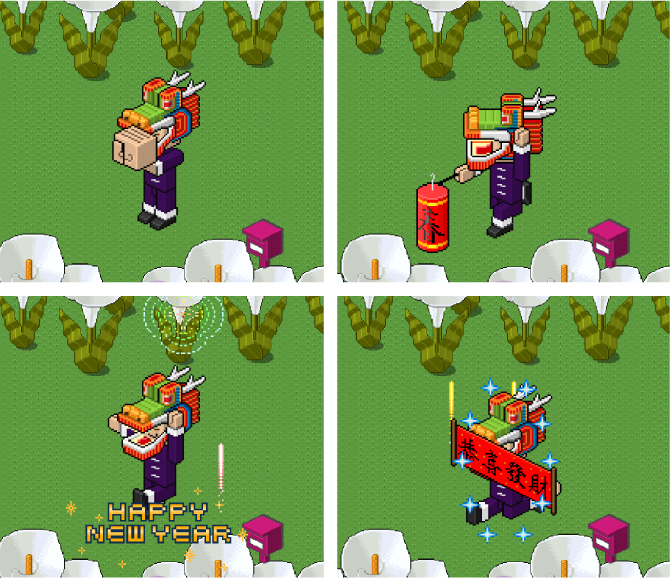 哇!這四種是要挑哪一種呀!每一種都很有過年的fu耶!一次可以選擇好兩個動作來組合唷!而且選好動作後還可以加上文字,最後就可以匯出成影片了!快來看看屁熊做好的影片!!!!
