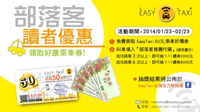 活動1: 部落客讀者優惠免費索取 「50元乘車折價劵」,前往索取:http://goo.gl/59WTCP