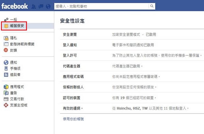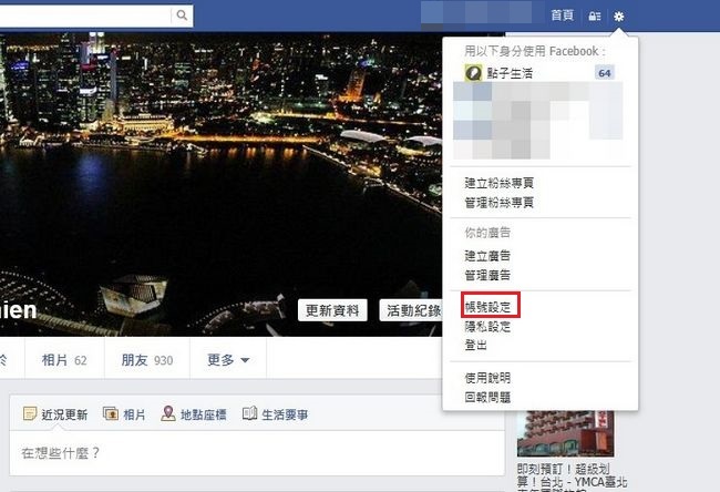 1.請先登入自己的臉書頁面,選擇「帳號設定」
