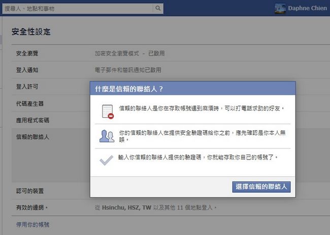 把臉書朋友設為信賴的聯絡人,不需幾分鐘即設定完成,小動作避免大大風險,如何設定?