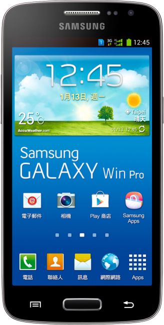 GALAXY WIN Pro全民天王機採用高效1.2GHz四核心處理器及16:9黃金比例4.5吋螢幕,不僅能讓使用者隨時體驗流暢的操作快感,更可讓消費者透過最佳螢幕顯示效果觀賞影音,增加行動樂趣。此外,GALAXY WIN Pro 全民天王機內建多款三星獨家智慧功能,其中包括可辨識使用者閱讀行為,不讓螢幕自動休眠的「Smart Stay智慧休眠」功能、可隨時掌握來電或訊息的「Smart Alert智慧提醒」,以及可立即中止來電、訊息等通知聲響的「翻轉以靜音/ 暫停」功能,讓使用者自在掌握行動高效。