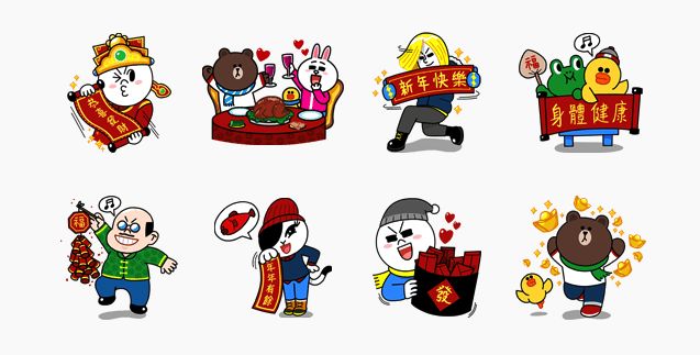 離農曆新年不到一個月,除了開始想年假要怎麼安排,這會兒LINE也率領旗下的主角明星群們換上應景的新年服飾搶先來跟大家拜年。這組新年快樂貼圖共有8張,使用有效期限為90天,下載日期到2014年2月6日,要下載的朋友趕緊把握時間。雖然90天感覺好少,不過想想90天後應該也真的用不太到了吧?!