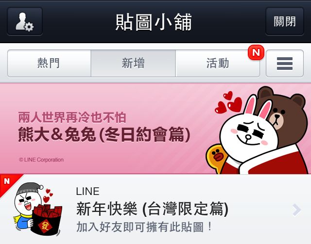 至於下載方式就請大家先進入LINE後到”其他” >>> “貼圖小舖“,在”新增” 或是 “活動” 中應該就能看見 “新年快樂(台灣篇)“這組貼圖選項,接下來… 就祝大家新年快樂喲!