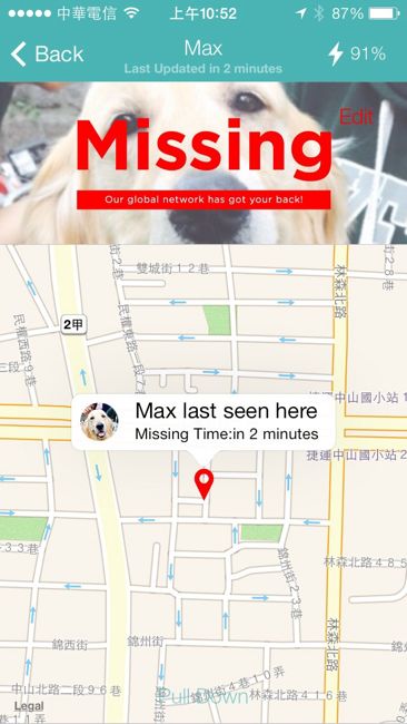 Puppy app 是免費下載,任何人皆可安裝,越多人裝設app,網路越密集,搜尋走失寵物蹤跡也將更為精準。