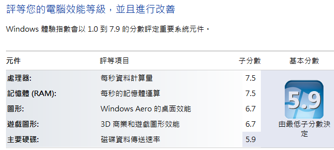 而他的存取速度相當快速,不會有傳統硬碟的啟動時間與搜尋時間所延遲,我們直接使用Windows中內建的體驗指數來看,雖說底下兩張圖並不是同一台筆電不同硬碟所測出來的結果,但我們可以明顯看到使用傳統硬碟的筆電,效能的瓶頸就是落在傳統硬碟上,也就是說整台筆電無論處理器或是顯示卡有多強大,但資料都還在硬碟中還沒讀出來,那也快不到哪裡去。但如果換上SSD後,瓶頸點就轉移到其他的處理器上,馬上就會讓整體的效能提升許多。這一點也就是讓人用過具有SSD筆電後,會回不去使用傳統筆電的最大原因。以重新開機速度來說,搭配SSD的筆電大多只要在10秒鐘內就可以完成,但如果以使用傳統硬碟的筆電來說,至少都是兩倍以上。而開啟檔案、存檔的效率,都可以讓軟體的執行更順暢。你還記得在玩遊戲時,關卡之間的轉換必須都要等很長一段時間在讀取與存入資料才能進行下一個關卡,如果使用SSD的話,這段時間就會非常快速的完成,也讓你不必再等到花兒都謝了。