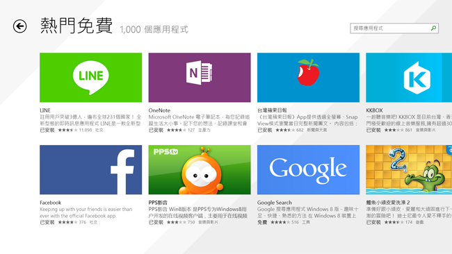 我們在 Windows 8.1 可以發現,對於市集分類有了重新的調整,很快就能找到喜歡的 App。