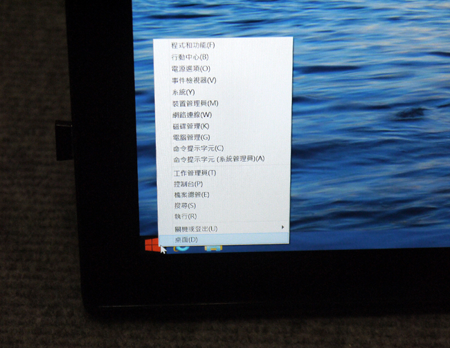 恰爾斯自己可能使用舊版 Windows 習慣了(因為公司都沒更新),還是很習慣桌面打開個開始功能表。這次的 Windows 8.1 大家可以發現左下角多了個 Windows 的圖示,沒錯!就是開始功能表回來了啦!直接右鍵還可以叫出習慣的系統、裝置管理員、事件檢視器、磁碟管理、命令提示字元…等功能,平常習慣叫出的工作管理員、控制台、檔案總管、搜尋也都回來了,蘇糊!