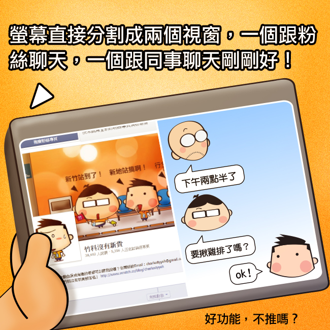 其實多分割介面還滿好用的,尤其在平板上做切換的動作。