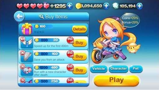特色裝備:遊戲最開始會免費提供3500個金幣及50個鑽石,提供玩家購買配備、寵物及交通工具,還可升級各種角色,以蒐集更多金幣、鑽石來提升裝備性能!