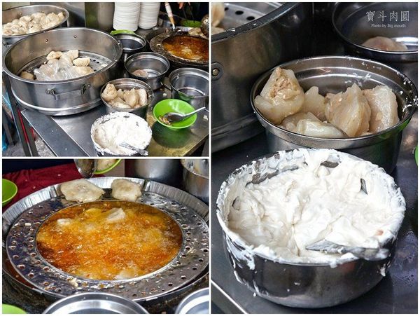 ▲寶斗肉圓的外皮據說傳自於北斗,以手捏成角錐形狀,蒸熟後取出待涼再經過油炸,將由瀝乾即可上桌,但大口覺得其實包的還蠻隨興的(笑),對於肉圓控來說好吃最重要(灑花)。