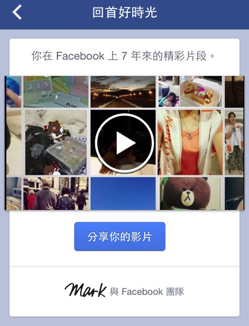 [2月5日更新] Facebook 的 lookback ,在手機版與電腦版中都直接新增了”分享你的影片” 選項,讓我們可以將回首好時光影片直接分享在 Facebook 塗鴉牆上。