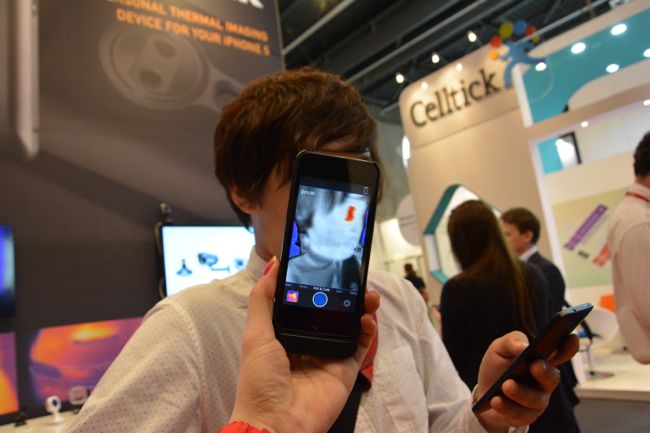 在今年 CES 2014 中現身過的 FLIR 熱感應保護殼,在這次 MWC 2014 中又登場亮相了。FLIR 推出的這款熱感應 iPhone5/5S 保護殼,最大的特色就是讓我們可以從手機畫面中,清楚地看見每個物體的溫度顏色。
