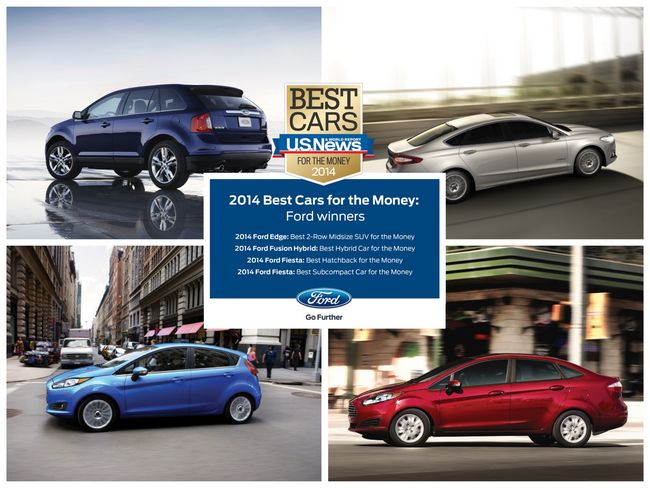 2014年Best Car for the Money決選,Ford以Edge中型休旅、Fusion Hybrid以及小型房車/掀背Fiesta共四款產品奪下最佳經濟效益車系的肯定。