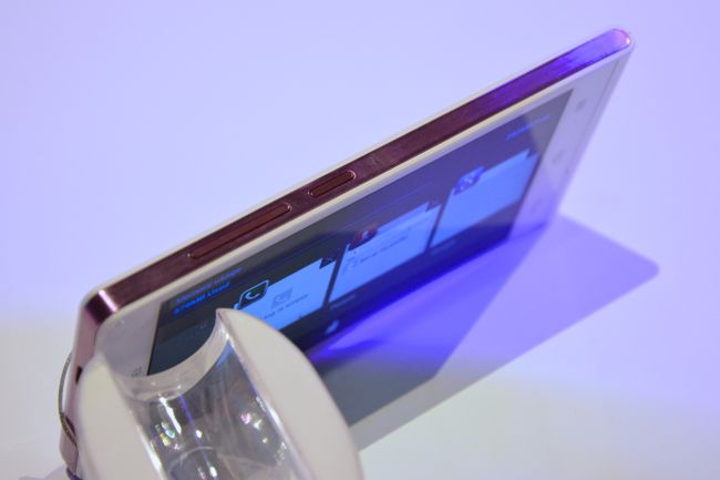 現場環境燈光關係,其實這款兩色與外形非常類似於iPhone 5,背部採用雙色金屬色澤。
