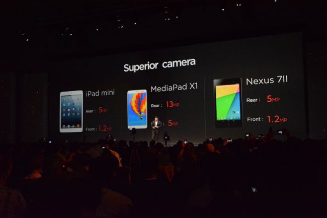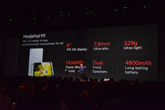 同場華為也展示了8吋的平板 MediaPad M1,具備LTE功能,使用8吋1280 x 800解析度螢幕,具有雙前置揚聲器和雙麥克風,可增加多媒體使用時的立體感。在處理器部分使用1.6 GHz quad-core 處理器,電池電力高達4800mAh,並搭載500萬像素主鏡頭與100萬像素視訊鏡頭。