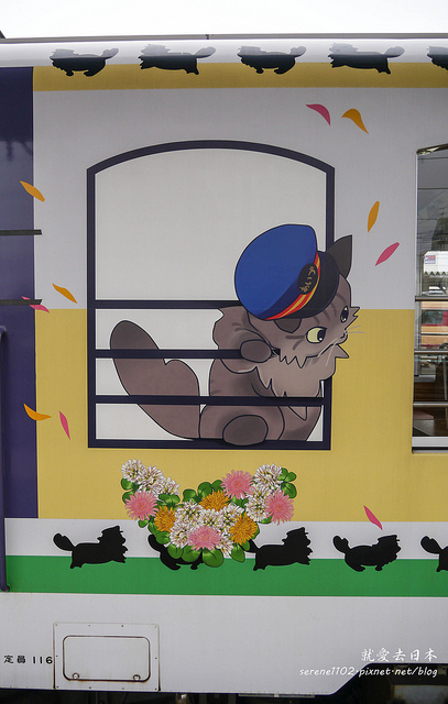 会津浪漫號展望景觀列車,第二節的貓列車塗裝上這隻可愛的灰色貓,就是芦之牧溫泉駅的貓站長「ばす」(BASU)。到了芦之牧溫泉駅,會暫停15分鐘。