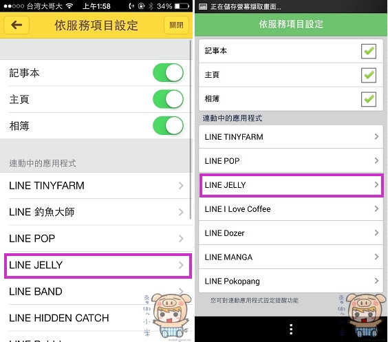 接著再選擇您要關閉的遊戲通知,例如小米選擇「LINE JELLY」(如果沒有您要的那款遊戲,這表示您未安裝,請先安裝遊戲程式,並與LINE連動。)