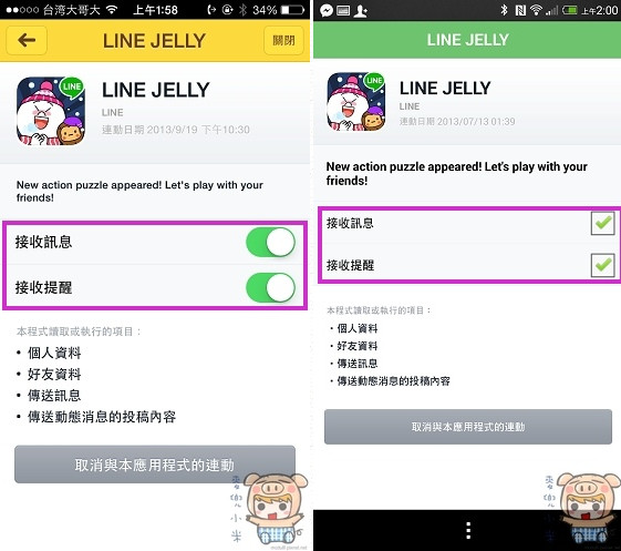 最後這樣就大功告成了,請將遊戲移除,或是放著不管即可,千萬別取消與本應用程式的連動。