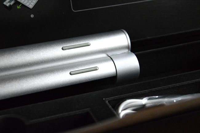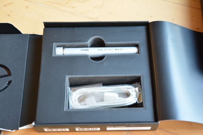 The Magic Bar 包裝盒一打開,就是充電座、電池與micro USB充電線三樣產品簡單的陳列盒中。