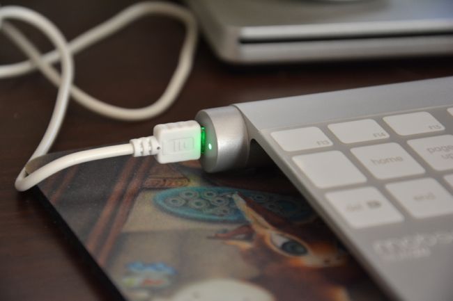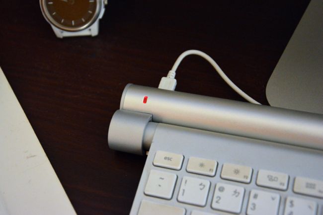 The Magic Bar 除了解決一次性電池消耗的問題,在外型上還採用了鋁合金屬感設計,讓裝上The Magic Bar 後的鍵盤仍舊能夠與家中 iMac 整體搭配相當融洽,絲毫不顯突兀及破壞畫面協調。充電座底部更貼心增加防滑設計,為我們增加使用上的穩定性。