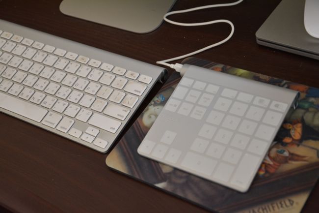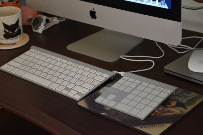 除了Magic bar 以外,還有一款叫做 The Magic Numpad, 盒中附有三張不同排列方式的貼紙,讓使用者只要上網下載程式,就能讓觸控板轉換成一般電腦右側的數字鍵盤使用。包裝中並附上一隻黑色簽字筆,使用者可以自行設定空白鍵的功能,例如複製、貼上、全選等寫在鍵盤貼紙上。