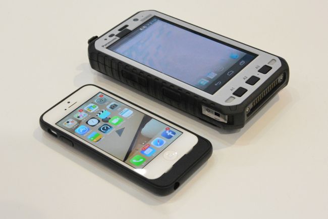 其實這5in Toughpad 究竟有多大?相信光看看裝上厚重保護殼厚的iPhone 5 在它身邊變得多迷你就可以稍微瞭解。