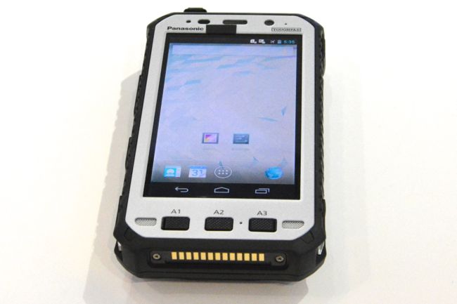 這款5in Toughpad 共有Android 與 Windows 兩種作業系統版本,Android 版本使用 Qualcomm Snapdragon 600 1.7GHz 四核心處理器,Windows 版本則是Qualcomm Snapdragon 800 2.3GHz 四核心處理器,兩者皆為 2GB RAM/32GB ROM,並且有著HD螢幕與 IP67 在1.5公尺的水中30分鐘的防塵防水功能。雖然這5in Toughpad 看起來笨笨重重的,但在相機方面也有800萬畫素的配備,還支援4G LTE呢!