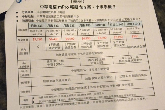 在2013年9月底熱熱鬧鬧舉辦發表會,並且以超高性價比(CP值)引起手機業界大地震的小米3 終於在暌違半年後登台,這次不僅公佈空機價為NT$9,999。並且宣布增加中華電信一同與原先的合作夥伴遠傳電信共兩家推出相關購買資費,讓消費者擁有更多的選擇。