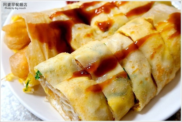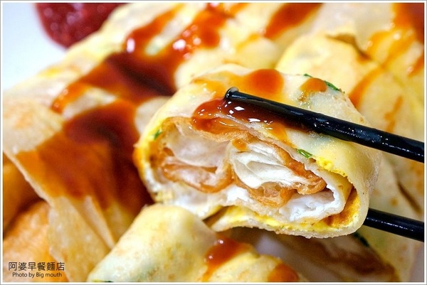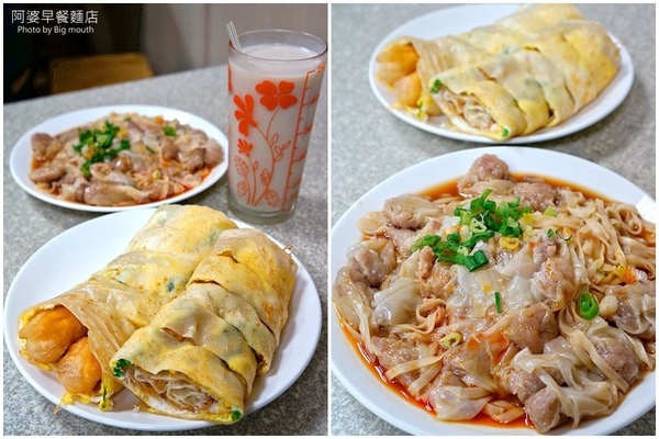 這次大口要帶大家來吃新竹美食溜! 開業於1981年的阿婆早餐麵店跟大口一樣老(咦),至今約有30餘年的歷史,是位於新竹高中正對面的平價早餐店,這裡不只是賣早餐,還有賣飯類、麵類等 正餐;他們家的雙黃油條很特別,現擀現煎的蛋餅皮鋪上蛋汁後,再包覆整條油條,份量十足,連男孩兒吃都會有飽足感!川味抄手麵更是店內人氣餐點之一,多達 20顆的抄手給得十分大器,與白麵一同搭配微辣的醬汁,餛飩吃起來滑嫩Q彈,白麵吸附滿滿醬汁後吃起來更為軟Q滑順,越吃越涮嘴,接下來就趕緊帶大家來去 看看邪惡又澎湃的早餐吧!