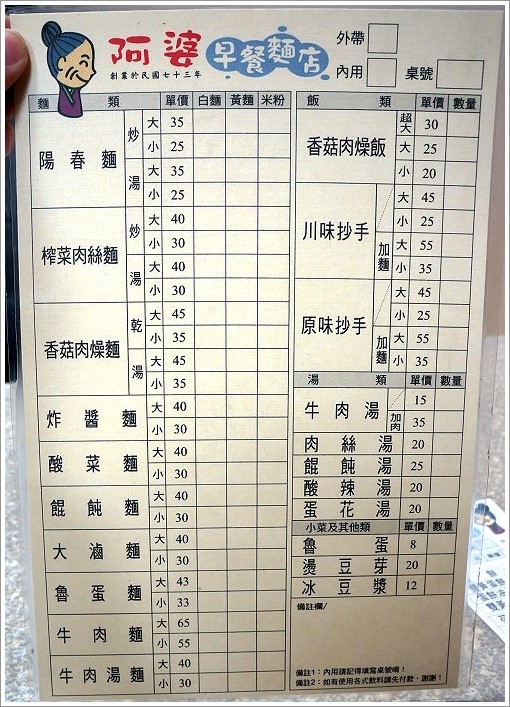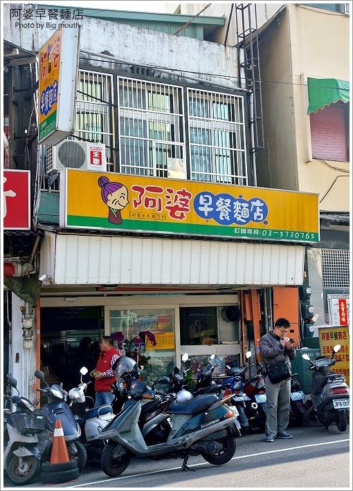 ▲阿婆早餐麵店就位於新竹高中正對面的東山街上,距離竹中大概十餘步路的距離,招牌上還有一個Q版的阿婆,灰常可愛!