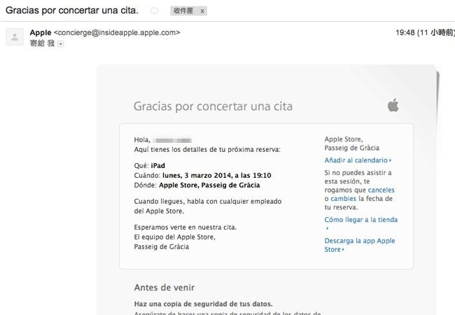 預約方式需要使用你的 Apple ID 來進行,因此當你預約成功後,便會在信箱中收到一封感謝以及確認信。