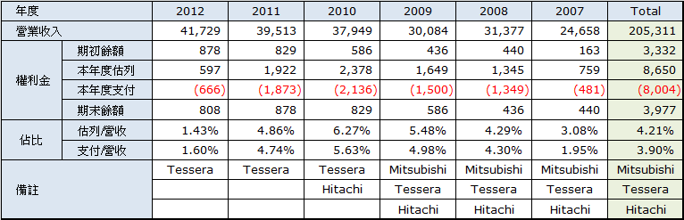 【表一】Tessera 權利金收入 (資料來源:Tessera 年報;千元)