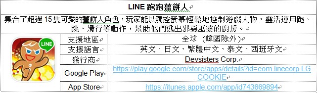 「LINE跑跑薑餅人」以多種角色變化和具挑戰性的關卡設計,在台灣以及全球各地颳起一股遊戲新風潮,在Google Play和App Store台灣區免費排行榜上已連續14天蟬聯冠軍寶座(自2014年2月19日至3月4日),成績不斐,深獲好評。