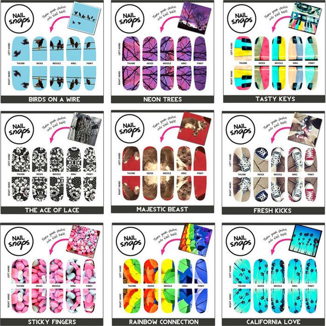 NailSnaps是來自洛杉磯的兩位女性於kickstarter提出的構想,可把自己喜愛的圖片、照片用手機拍下印成指甲貼紙。