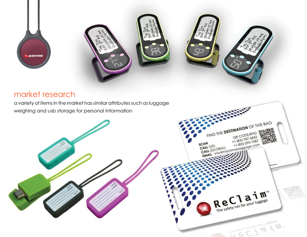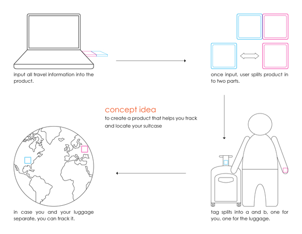 全球各地的機場,總會有旅客遺失行李,或是糊塗的旅客在行李轉盤誤取他人行李。在登機劃位托運行李時時,地勤會列印出行李標籤交由旅客,萬一在行李遺失時備查,但是概念產品比這流程更聰明,可以幫助旅客使用手機追蹤行李所在位置。