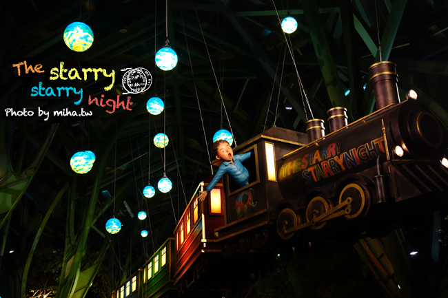 倒是晚上的飛天火車就真的美的很值得來看看,而且丟丟鐺森林廣場比較大一點,人群也不會太多,都還在可以接受的悠閒範圍,晚上吃過無菜單料理後,實在飽到要翻掉,特別繞過來散散步。