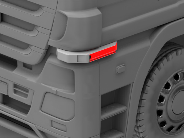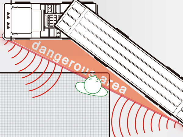 Safe Line設計安裝在車頭及車尾,可偵測並產生到大範圍車輛轉彎的角度,使得這個轉彎角度的危險區域擴大,也越有安全保障。