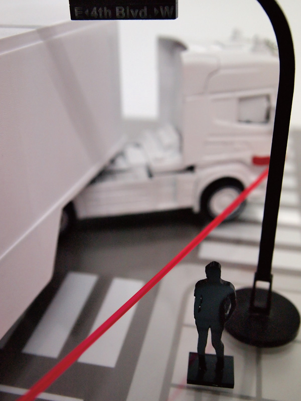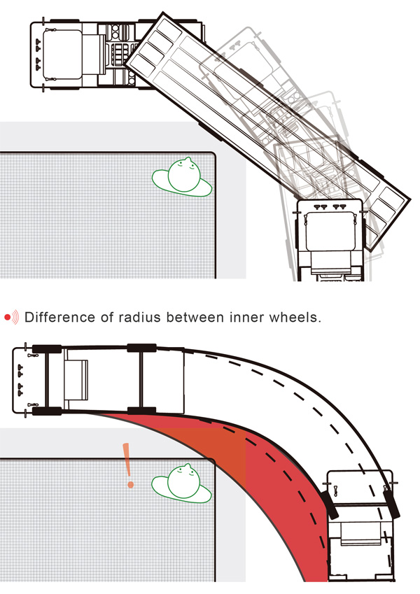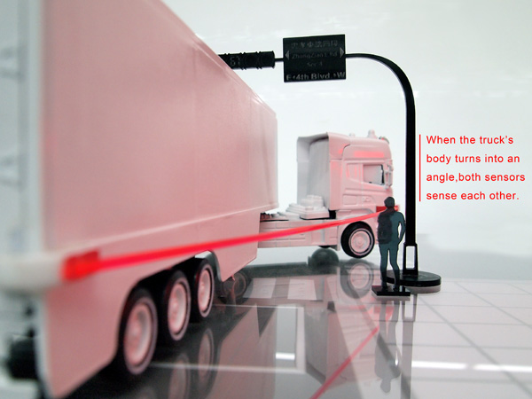 大型車輛在轉彎時擦撞行人、車輛所發生的意外、悲劇永遠沒有停止的一天,大型車輛又容易產生視線死角,駕駛司機除了只能以經驗判斷,其他只能自求多福,但是這樣還不夠,不但自己需小心駕駛,也要當心其他車輛、行人。只是經驗再老道的司機也會有誤判的時候,每條路況不同、轉彎的角度也不同,且在轉彎時前後輪不同角度的差異不易判斷,是最容易發生意外的癥結。概念產品Safe Line 因此被開發出來,產生紅外線檢測和警示行人或其他車輛是否有處於轉彎時的危險區域,協助駕駛判別。