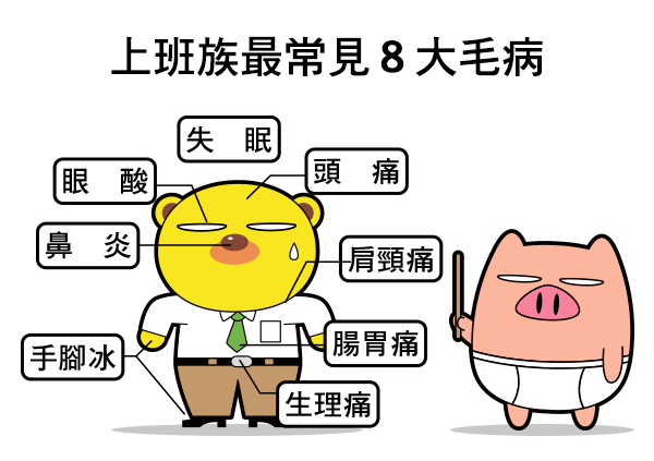 常常上班就有人這裡痛~啊那裡也痛~昨天頭痛,今天換肚子痛~~~這八種大概就是上班族最常發生的毛病了