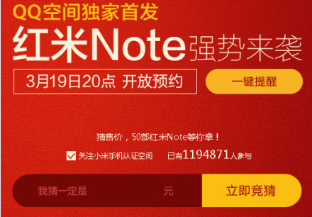 而預購流程也一如小米風格,共分為15日可以開始透過QQ空間手機版來進行預約準備、3月19日 20:00 — 3月25日12:00開始進行預約、等到拿到預約資格後,才能於3月26日 12:00 憑著預約碼來進行紅米Note 的搶購。