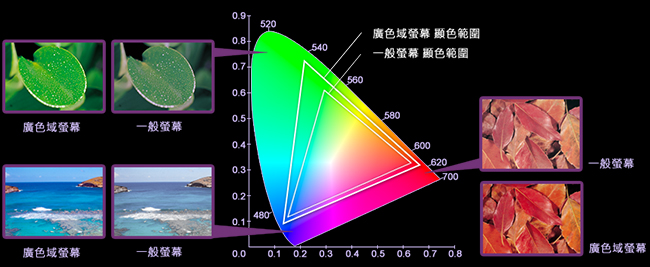 大螢幕果然霸氣啊!而且螢幕是使用廣色堿驚艷螢幕,對照一般螢幕,顏色效果立即分出高下!