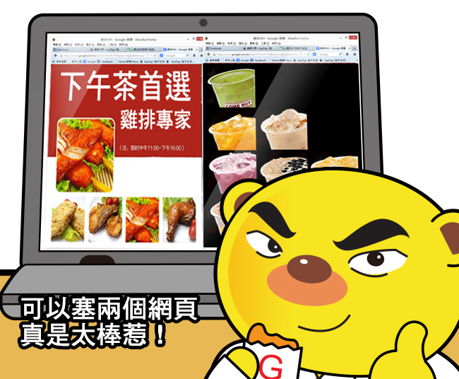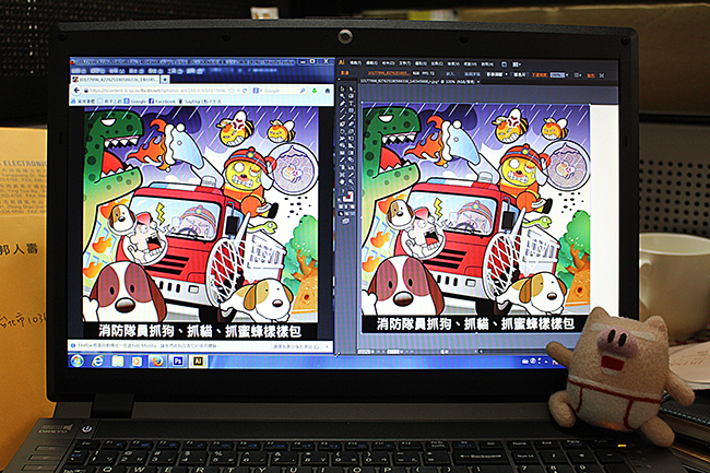 大螢幕的好處就是可以一次把二個程式頁面放一起,一邊畫圖一邊找資料不用一而再的切換,尤其是你上班摸魚時開fb網頁跟拍賣網切換不過來被被老闆發現時更好用(大誤)