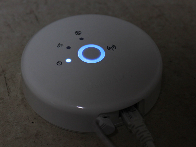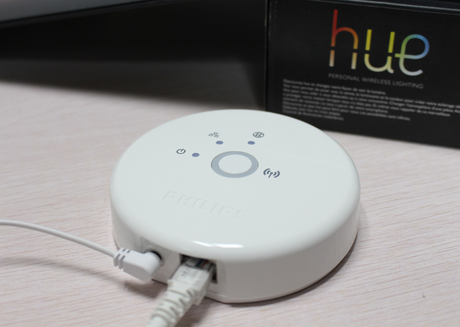 為了打造這樣的智慧型無線燈具,這裡有個隨附於盒內的橋接器 hue Bridge,這主要是連結到我們家中的 WiFi Router,透過無線網路就能使用手邊的行動裝置來控制燈泡的變化,據官方規格說明,我們可以在這單一系統中連接多達 50 個 hue 燈泡,對一個家庭來說是真的十分夠用了!