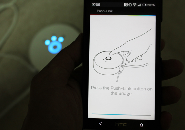 接著我們按下橋接器上的按鈕,很快的就能連上燈泡。